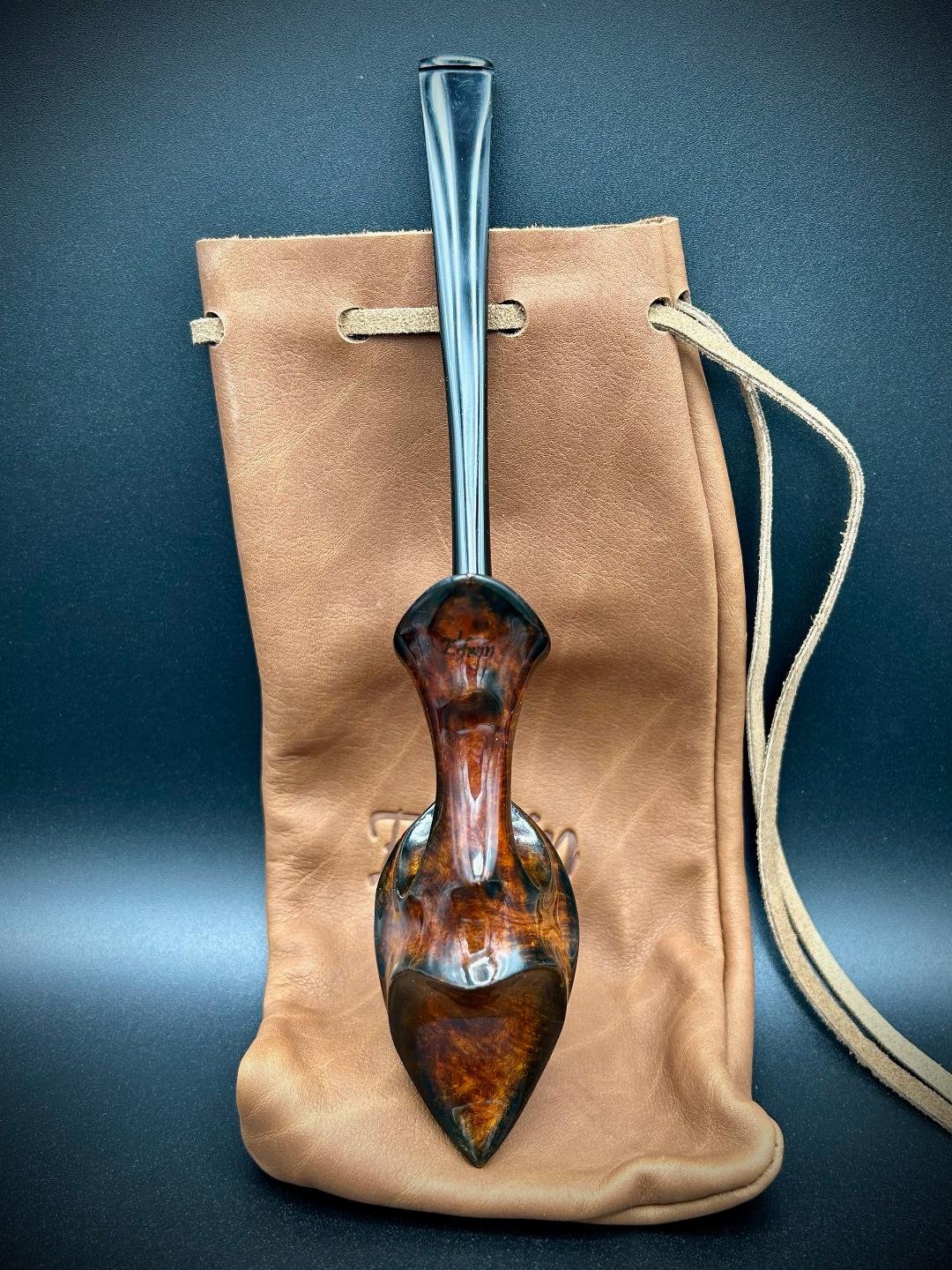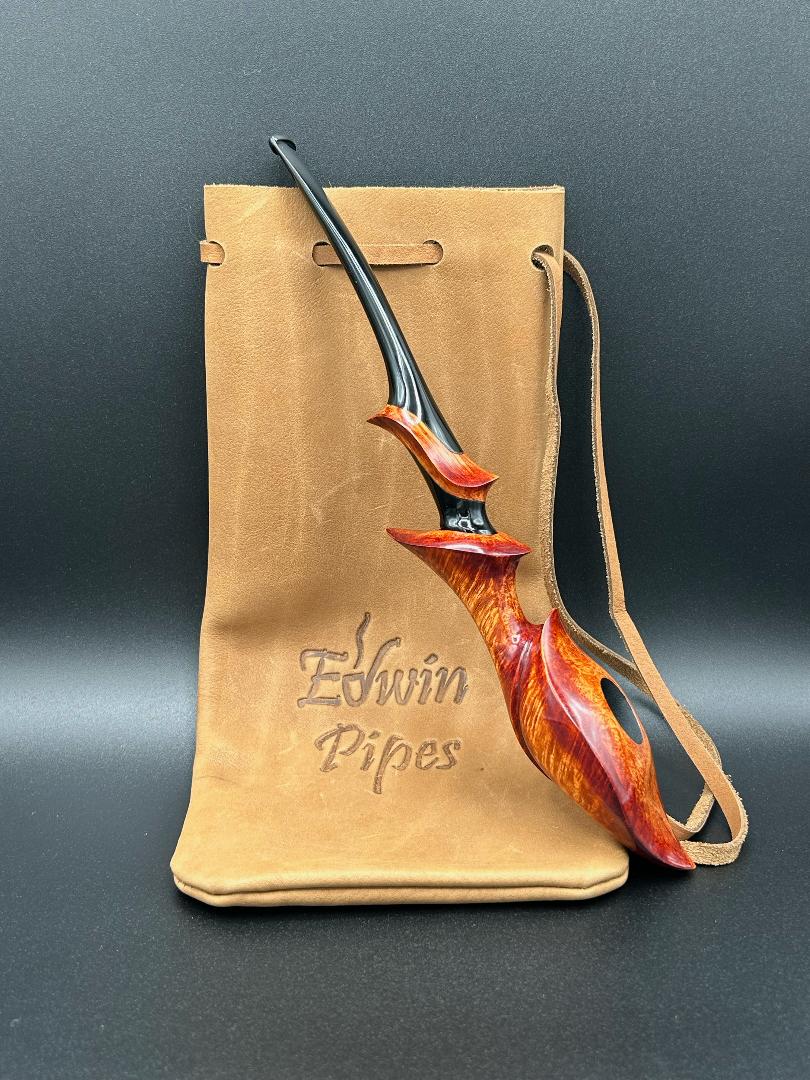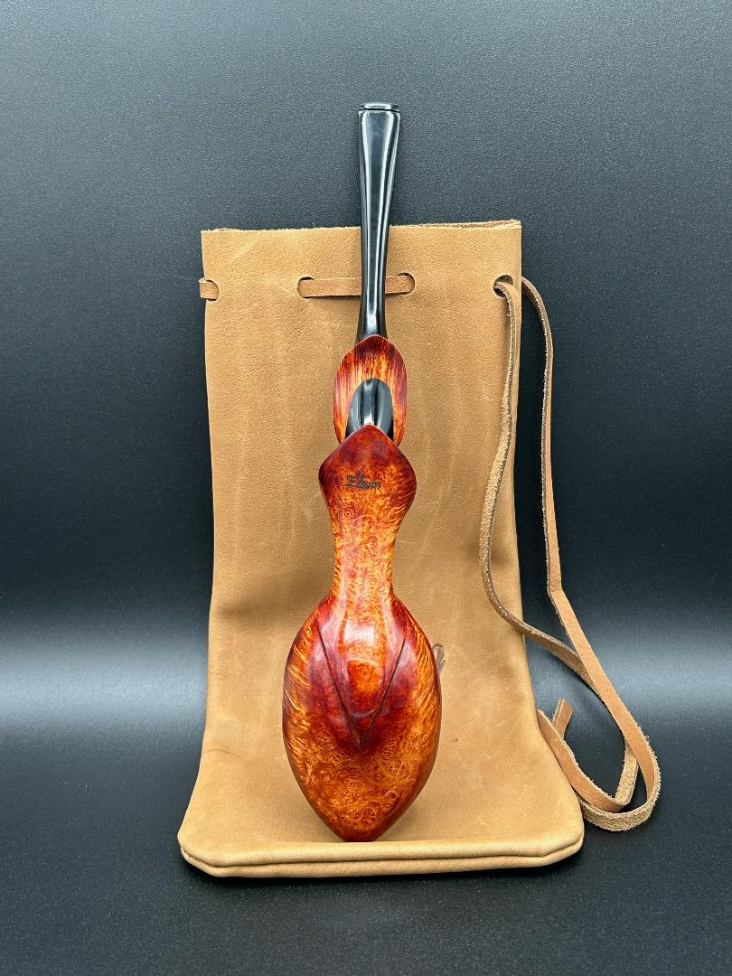The Willow Leaf is the newest shape to my repertoire. It shows both the straight grain and the birdseye grain beautifully. This pipe can only be described as graceful. Somehow the strong, flowing lines remind me of a ballet dancer. This pipe will turn some heads every time you bring it out. Call, message, or email me directly to purchase.