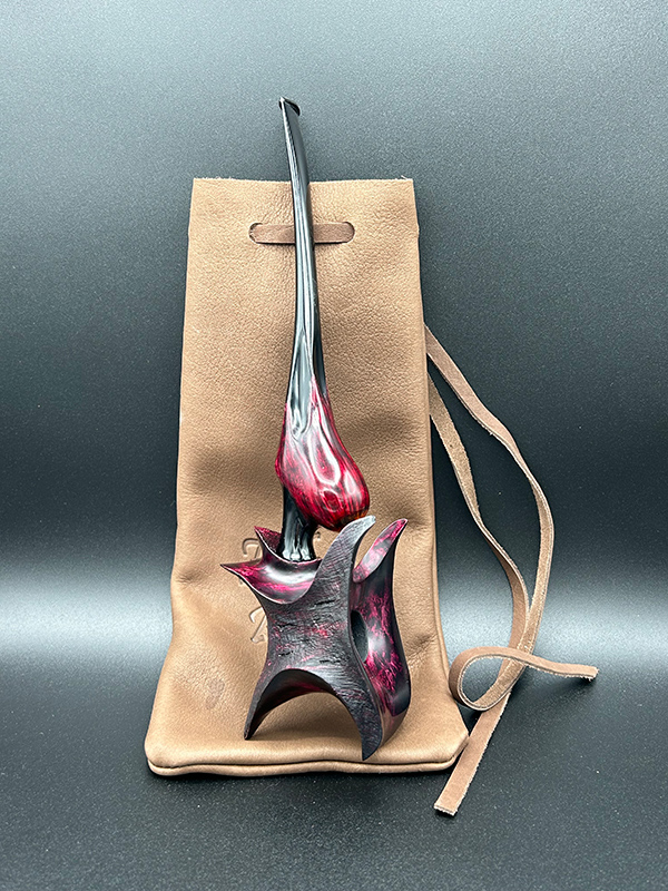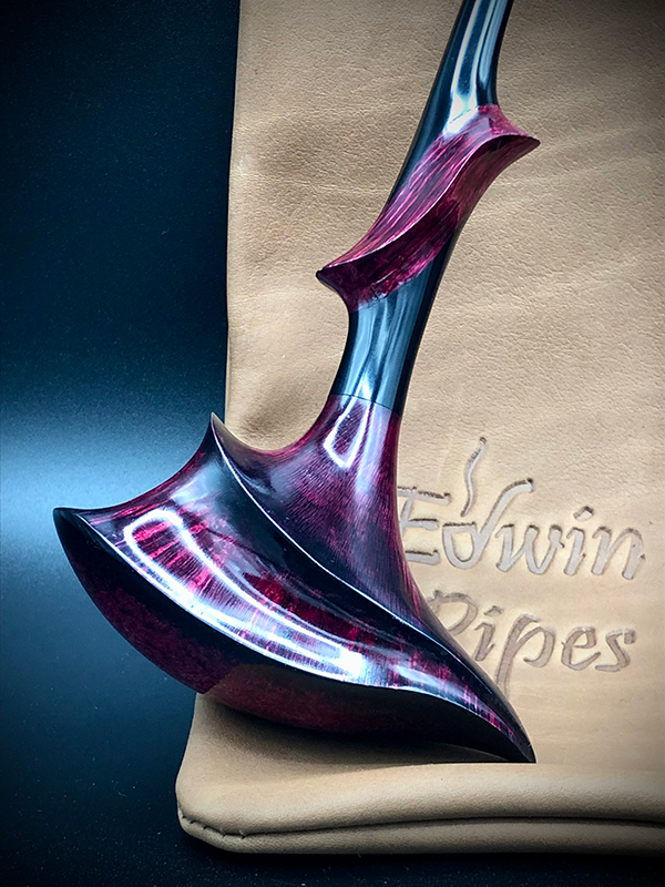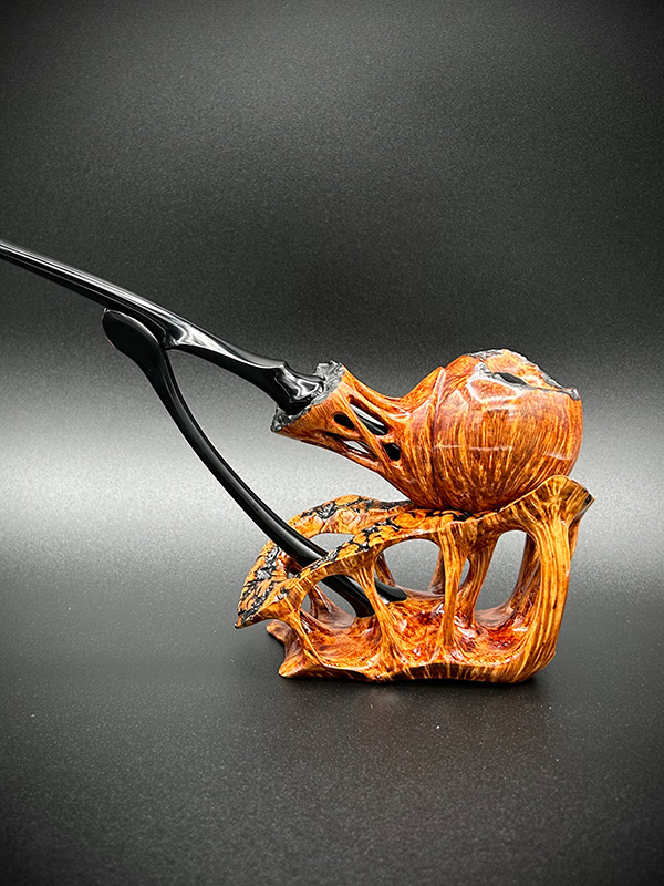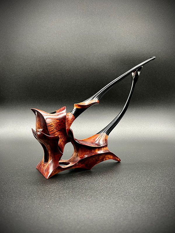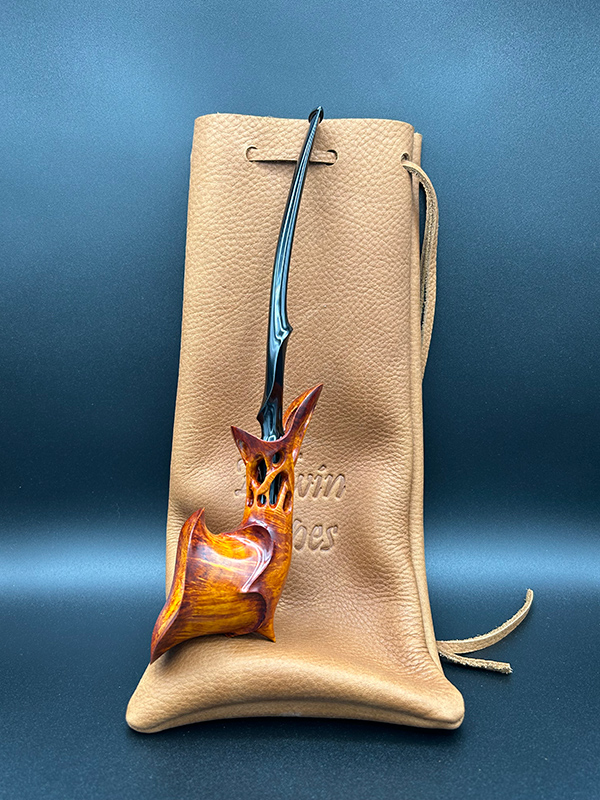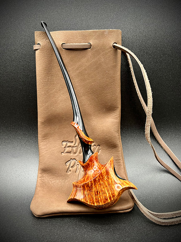 When I first sat down to design this shape, I wanted every line on the pipe to flow smoothly into the next. The result is a pipe that is very pleasing to the eye. Long or short, they smoke beautifully and sit comfortably in the hand. Their fantastical appearance appeals to pipers and artists alike.